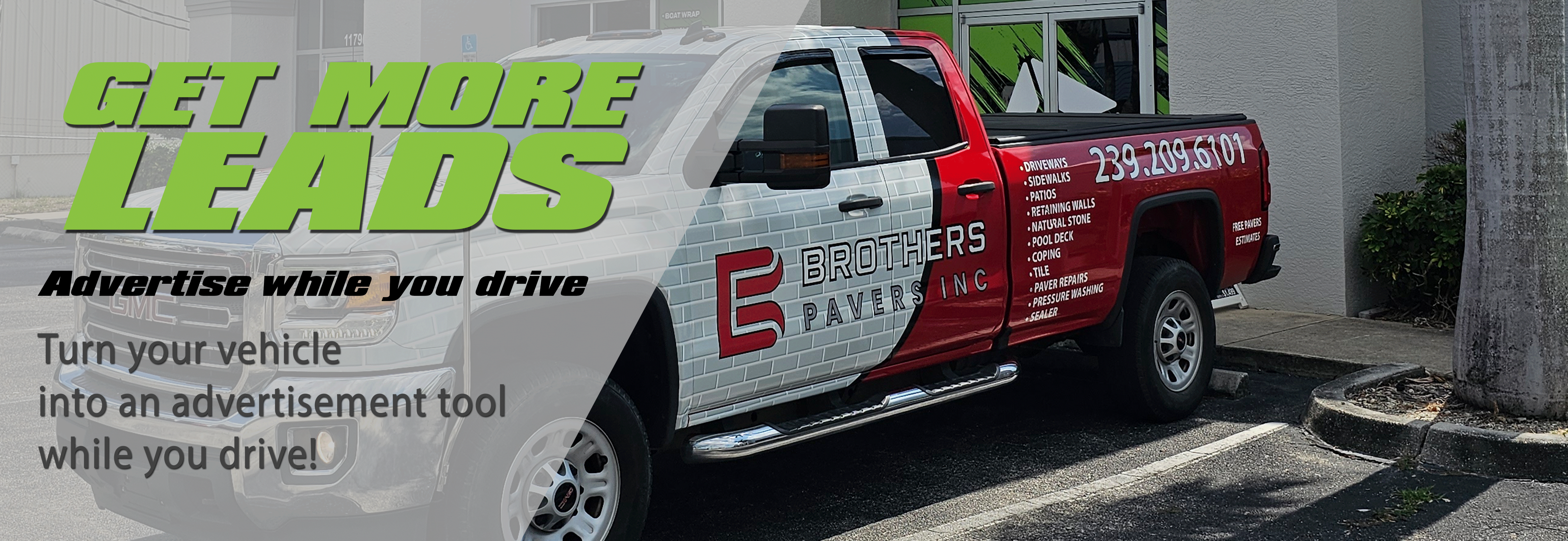 Click and drag on the blue bar on the image to see how a design can drastically change the look of a vehicle and advertise your business while your drive