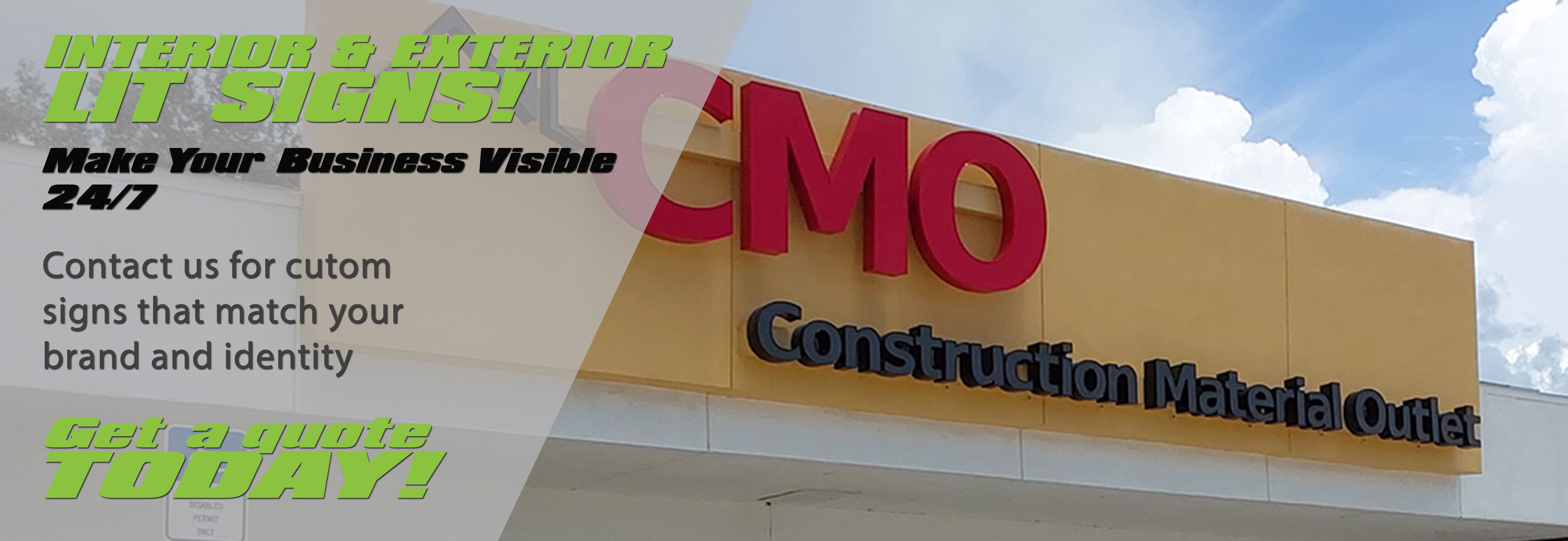 Lit signs could be made in a wide range of materials and thickness ranging from aluminum to acrylic to HDU which is an outdoor grade hard foam, we also make signs from acrylic or aluminum composite. We also make all types of lit signs, from individual front lit channel letters to lit cabinet signs and EMC electronic message centers.